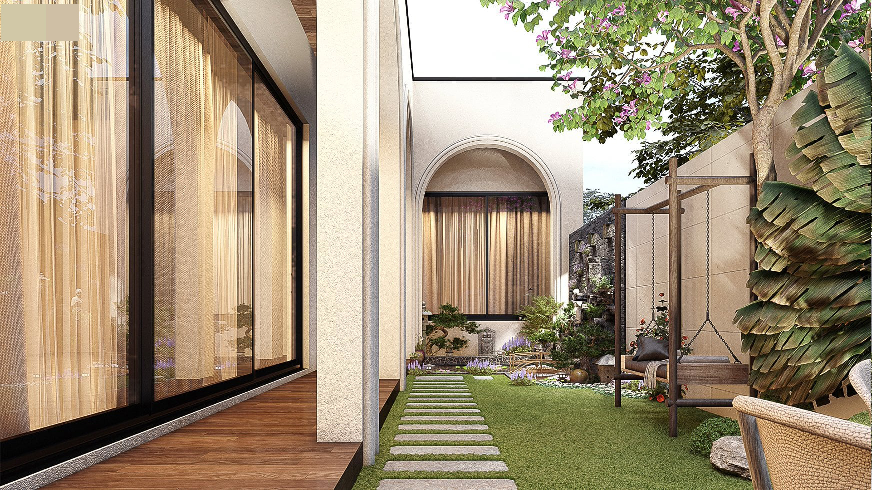 - Diện tích đất rộng: Dễ dàng bố trí nhà theo hình chữ L để tách biệt không gian sinh hoạt.