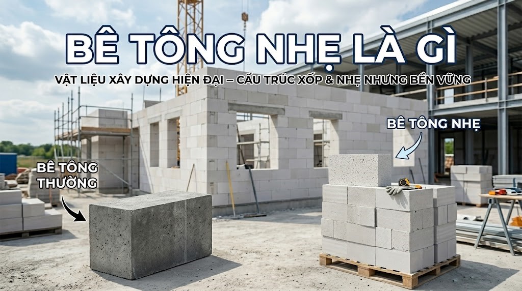 Trong ngành xây dựng hiện nay, bê tông nhẹ ngày càng được ưa chuộng nhờ trọng lượng nhẹ, khả năng cách nhiệt tốt và dễ dàng thi công. Tuy vậy, đối với những người mới bắt đầu tìm hiểu, bê tông nhẹ là gì hay bê tông nhẹ có bền không vẫn là những thắc mắc chưa có lời giải. Vậy nên, bài viết hôm nay sẽ cung cấp đủ các thông tin về khái niệm, đặc điểm, phân loại và những ứng dụng của bê tông nhẹ để bạn có thể có cái nhìn rõ ràng hơn nhé!